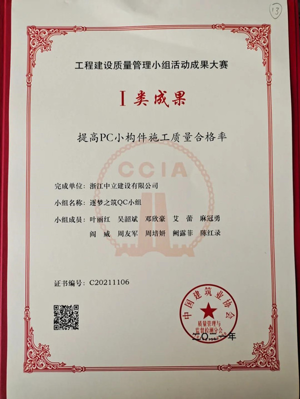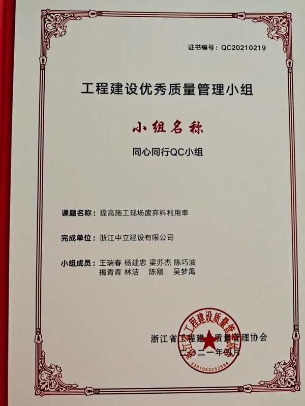 近日,從中建協(xié)傳來(lái)喜訊,中立公司逐夢(mèng)之筑QC小組獲工程建設(shè)質(zhì)量管理小組活動(dòng)成果大賽Ⅰ類(lèi)成果。今年我公司QC成果取得豐碩成績(jī),另外樹(shù)人之心QC小組獲得浙江省優(yōu)秀QC成果一等獎(jiǎng)1項(xiàng)、同心同行QC小組獲浙江省優(yōu)秀質(zhì)量管理小組。