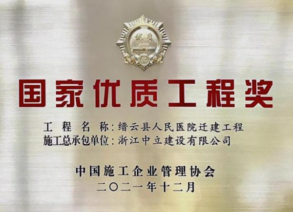 我公司承建的縉云縣人民醫(yī)院遷建工程榮獲2020—2021年度國家優(yōu)質(zhì)工程獎(jiǎng)。這是中立獲得的第一個(gè)國家優(yōu)質(zhì)工程獎(jiǎng)項(xiàng)目,也是麗水本地企業(yè)第一個(gè)獲國家優(yōu)質(zhì)工程獎(jiǎng)項(xiàng)目。