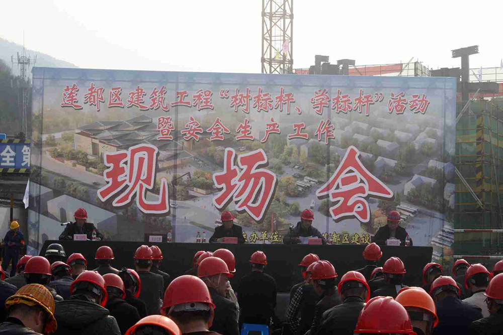 3月8日,蓮都區首次建筑工程“樹標桿,學標桿”活動暨安全生產工作現場會,在麗水市中立建筑工程有限公司承建的古堰畫鄉游客接待中心工程施工現場召開。參加會議的有蓮都區屬建筑施工企業分管安全生產負責人、在建建筑工程項目負責人,碧湖、大港頭、老竹三個中心鎮分管領導及安全管理人員,各建設管理所主要責任人和安全管理人員,執法大隊負責建筑工程施工安全生產管理人員,建設房產科相關人員,共計100余人。