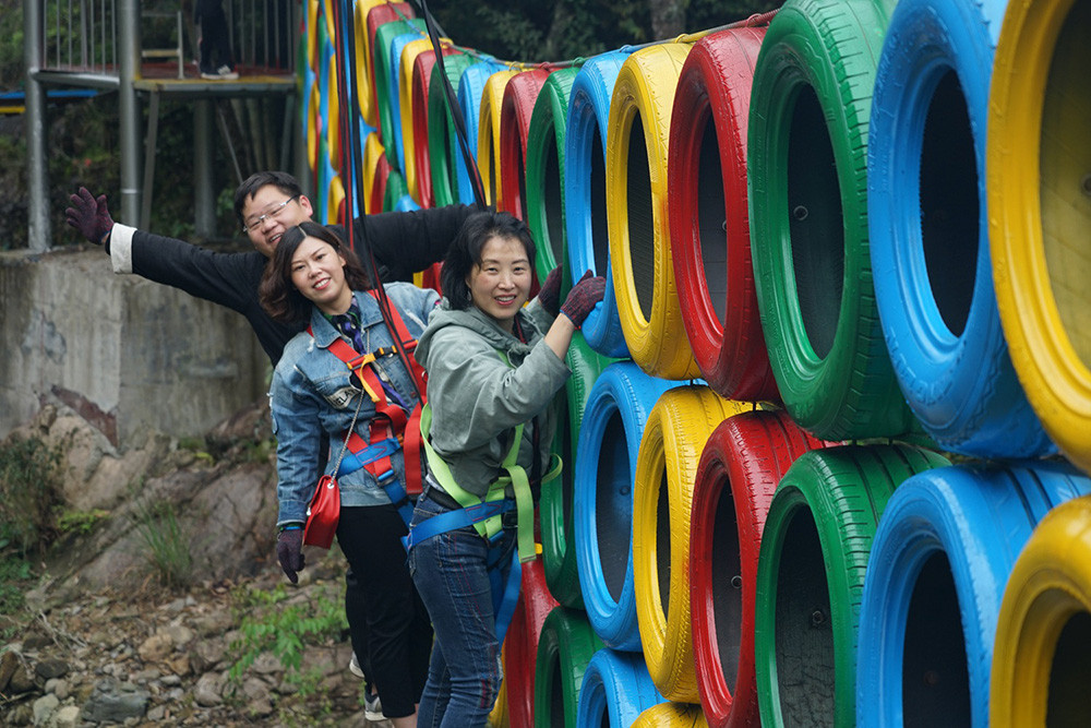 早上9點,在董事長和總經理的帶領下,大家到達目的地,員工們便開始了拓展穿越活動,大家團結協作,挑戰自我,突破一關又一關的項目,最終成功到達終點,大家臉上都洋溢著自信笑容。