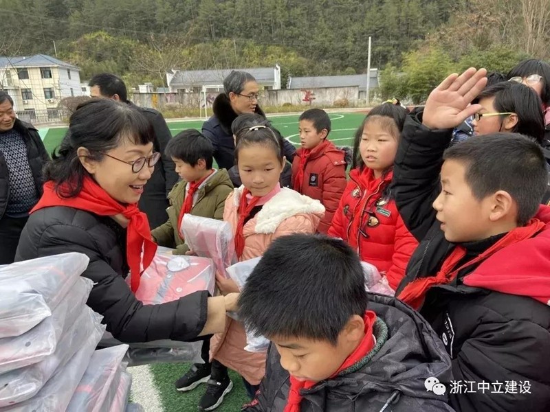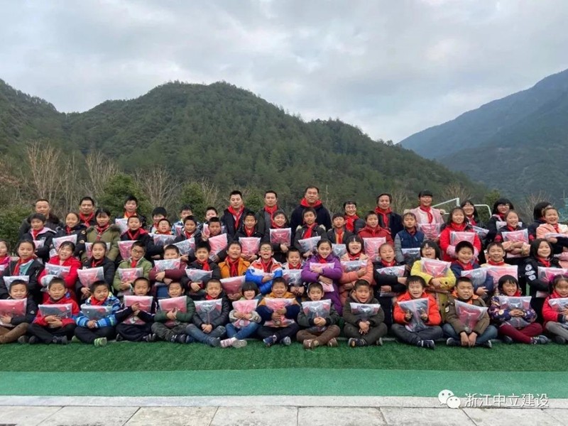 新年伊始,恰逢臘八,浙江中立建設有限公司帶著81套校服走進遂昌大山深處的黃沙腰小學,給大山里的孩子送去冬日里的溫暖。公司副總經理葉麗紅、項目負責人曹亮、黃沙腰鎮鎮長毛威、黃沙腰鎮人大主席涂挺、遂昌縣教育局黨組成員王其孔、黃沙腰小學校長葉益明出席了捐贈儀式。在捐贈儀式上葉麗紅希望同學們刻苦學習,立志成才,不負韶華,回報社會,回報祖國。葉校長致辭對捐贈校服的善舉表述了衷心的感謝。校優秀少先隊員王夢媛致感謝詞:“叔叔阿姨們,請相信我們,我們會努力學習,去創造一片屬于自己的絢麗天空;我們會努力學習,早日成為國家的棟梁,為家鄉建設貢獻自己的力量。我們堅信一定不會讓你們失望!”