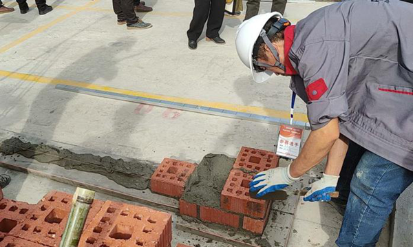 參賽代表需在1.5小時內完成長1.5米、高1.2米的帶預留洞口和馬牙槎的砌體,通過緊張、激烈的競賽,最終裁判通過垂直度、灰縫寬度、平整度等現場實測實量和砌體構造及觀感質量等綜合評分,我公司代表隊獲得了第二名的好成績。